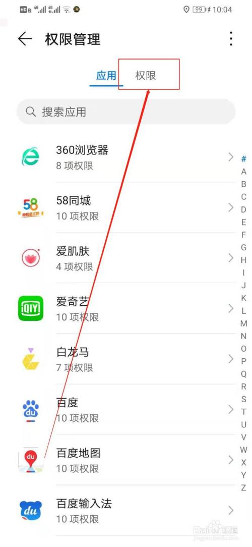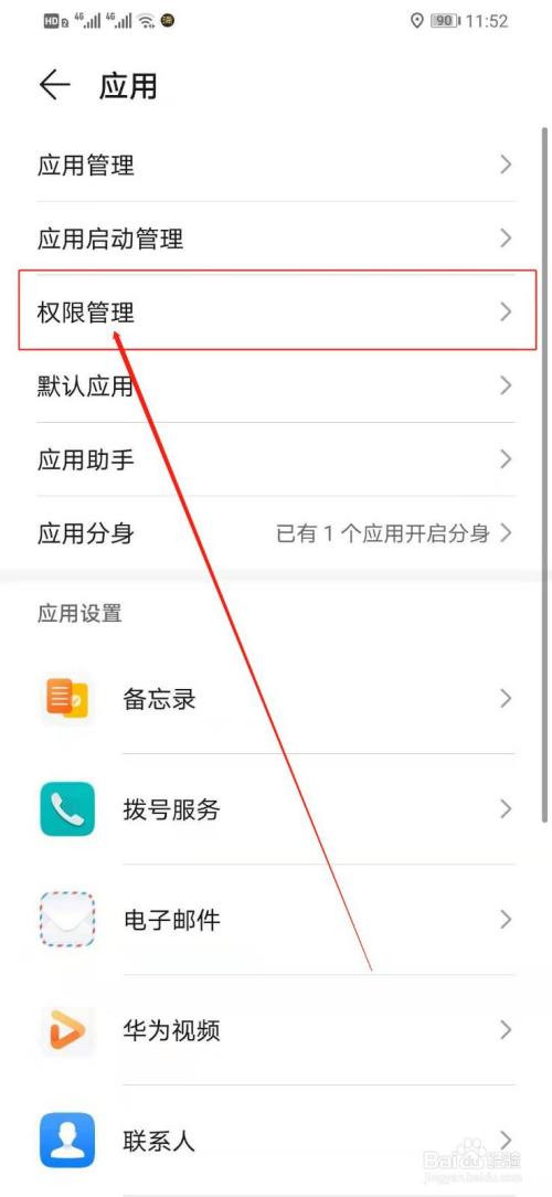 之后点击打开“应用”,在该界面找到“权限管理”选项,如图