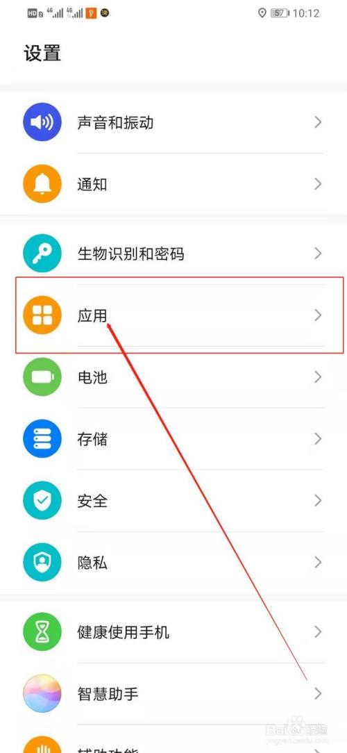 接着在“设置”中,向上滑手机,找到“应用”选项,如图框选出来的