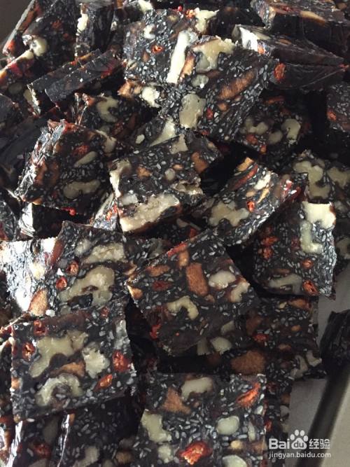 第十步:把保鲜膜铺在烤盘上,把搅拌均匀的阿胶混合物放入烤盘,压平整,裹好保鲜膜…放凉后放入冰箱冷藏。(冷藏2-4小时,如果不赶时间,可以冷藏到第二天)