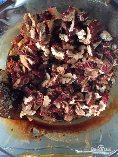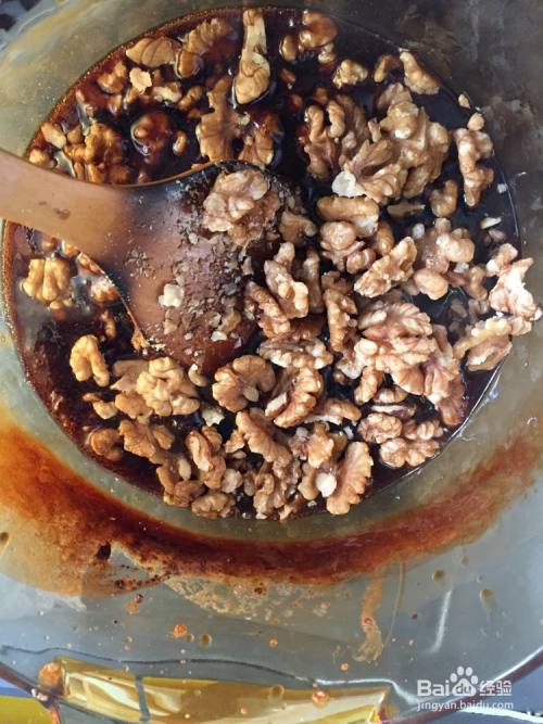 第五步:把辅料有颗粒大到小依次放入,搅拌,首选放入核桃仁。