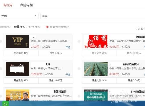 这里可以根据销量、价格排名、各种排名等去搜搜你需要的专栏。