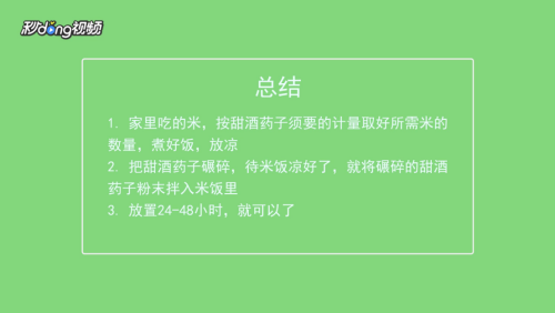 将碾碎的甜酒药子粉末拌入米饭里,不停翻拌均匀,加入少许水,放置24-48小时就可以了。