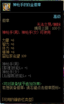 左右槽需镶嵌白金徽章。白金徽章有传说品级,也有蓝色品级的,可镶嵌所有职业的白金徽章。