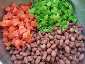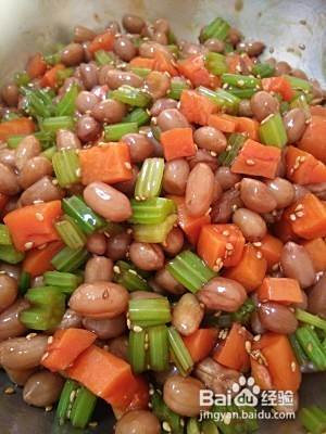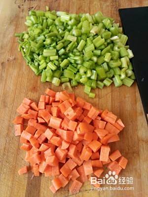 煮花生米的同时,把胡萝卜和芹菜洗净切丁或切段备用。