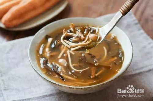 往汤中加三勺生抽,盐,和四勺胡椒粉。加一勺面筋水,汤变粘稠后关火。
