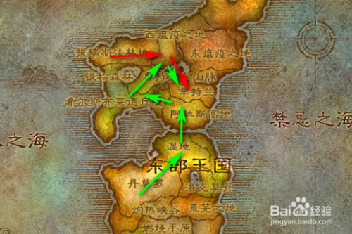 从地图可以看到,红色的是部落的路线,绿色的是联盟的路线。