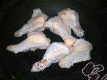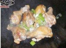 锅里放油,小火煎鸡翅,煎到金黄色,加葱蒜;(也可以不煎鸡翅,但煎过的更好吃)