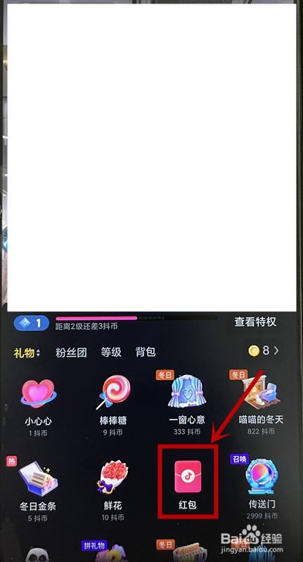 进入抖音直播间,点击直播页面上右下角的礼物盒子,进入礼物盒子,找到红包,点击它即可。