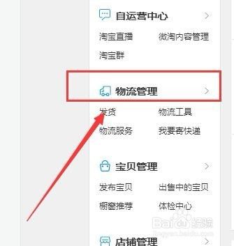 首先打开卖家中心,找到工具栏左侧物流管理,如图所示。