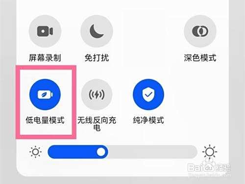 或者从手机屏幕右下角下拉打开控制中心,继续下拉,点亮【低电量模式】图标开启。