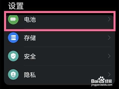点击手机桌面上的【设置】图标,点击【电池】选项。