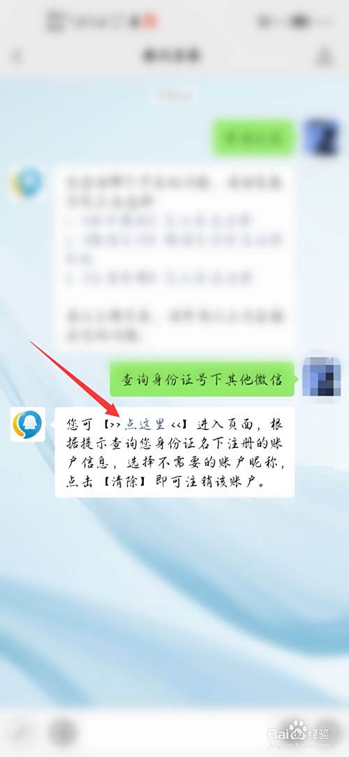 在对话框中输入查询身份证号名下绑定的微信账户,然后点击客服回复信息中的链接【点这里】。