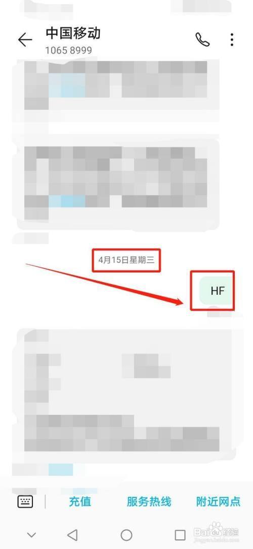 发送短信内容:HF给号码为10658999的中国移动。