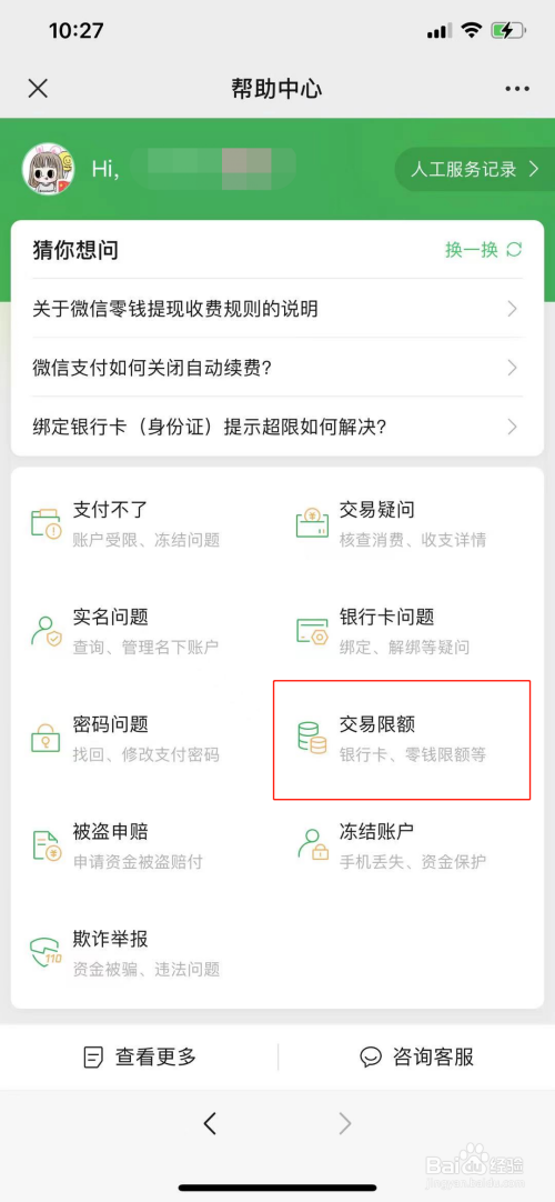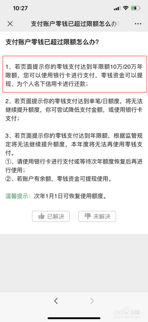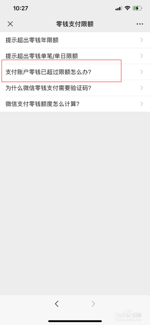 点击问题“支付账户零钱已超过限额怎么办?”;