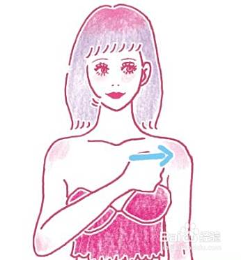 接下来的动作是顺着淋巴的流动方向做滑动按压。然后舒缓另一侧胸部。