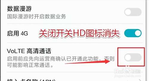 我们点击后面的开关,将该功能关闭。关闭后,顶部的HD图标也会随之清除消失。