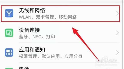 进入手机的设置中,在设置中,选择“无线和网络”的选项进入。
