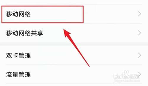 在无线和网络设置中,我们选择页面中的“移动网络”选项进入。
