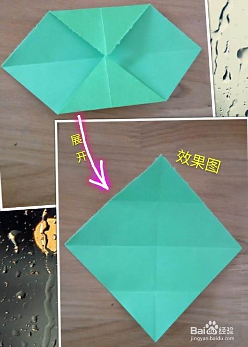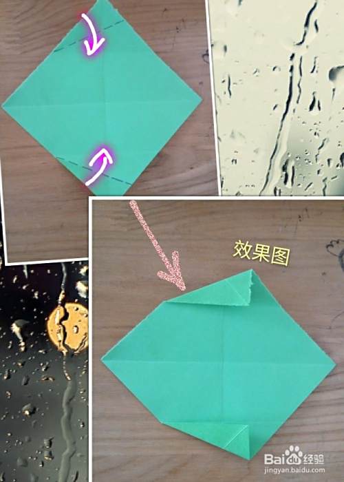 将上半部分沿水平中线痕迹向下翻折重合!效果如下!