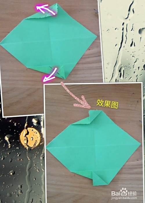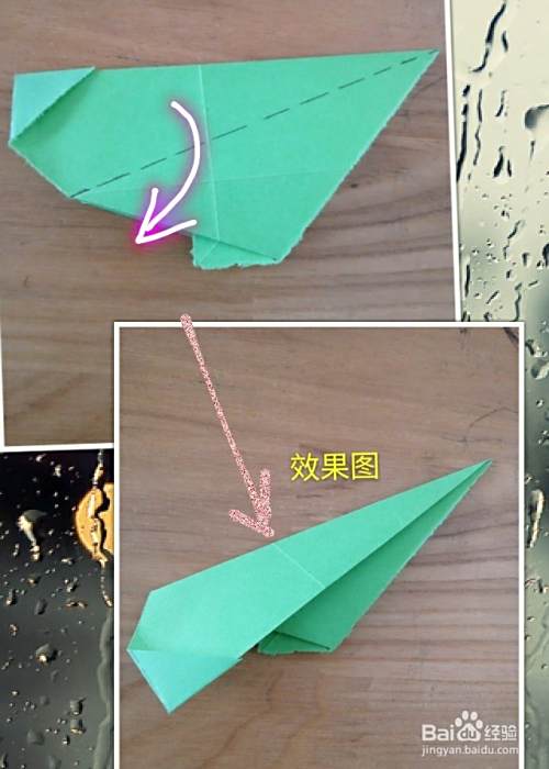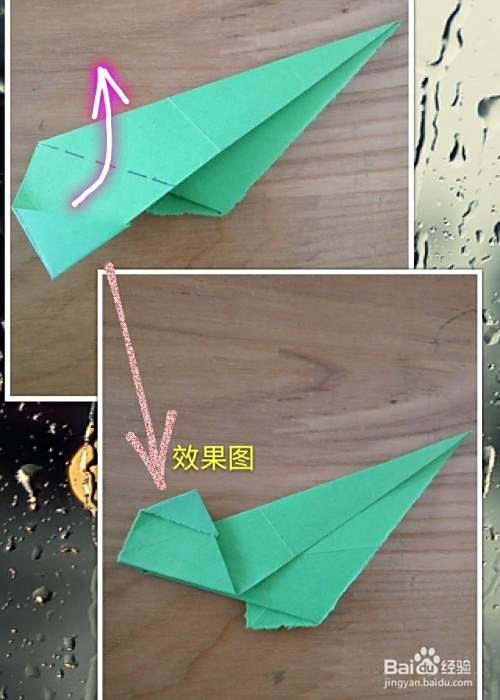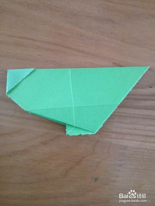 将上一步翻折下来的尖角部分沿所画虚线向上翻折!效果如下!