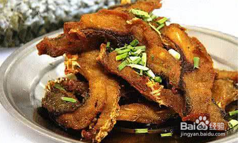 熏鱼。制作熏鱼最好的材料就是草鱼,因为它体型够大而且鱼刺较少,把草鱼片成片用厨房纸巾擦干上面的水分,煎至两面金黄再复炸一次,使之酥脆,浇上用酱油糖勾芡好的佐料,这道菜既可以当做菜食用,也可以当作小吃。