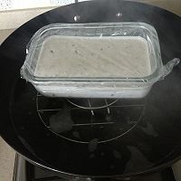 倒入已抹油的容器,用保鲜膜覆盖,放入已烧开水的锅里蒸25分钟,打开保鲜膜再蒸2、3分钟。关火