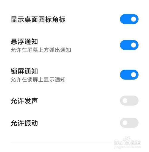 如下图,是对消息提示的设置,包括是否在图标显示、悬浮通知、锁屏通知、是否震动和声音提示;
