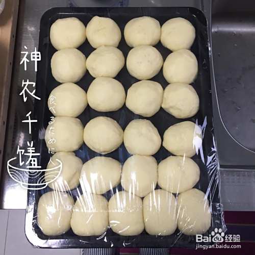 3. 把发酵好的面团揉搓下,摊平排出面团内的空气,然后将大面团均匀的分成若干的小面团,进行二次发酵,大概醒发20分钟左右。