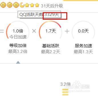 将鼠标放置等级图形上,然后等待片刻就可以看出你总共上线的天数。所以看出我在线时长是3000多天,可想而知升级有多难;