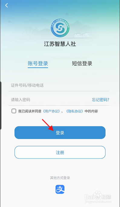 进入江苏智慧人社APP,选择相应的登录方式进行账号的登录