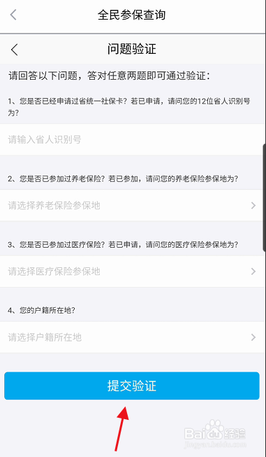 进入全民参保查询,填写相关信息,点击提交验证进行查看