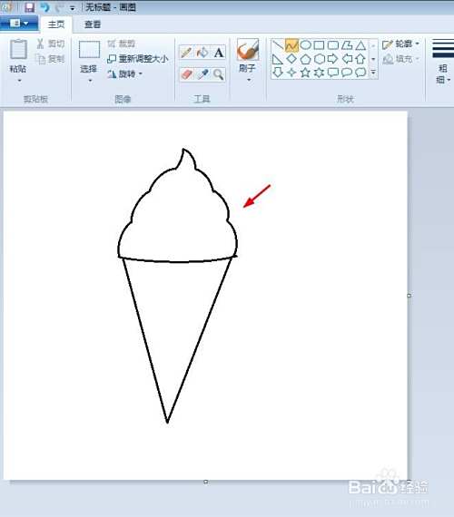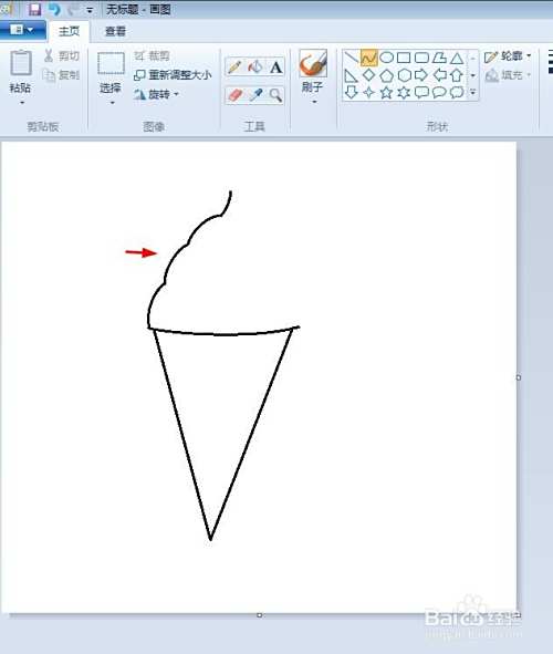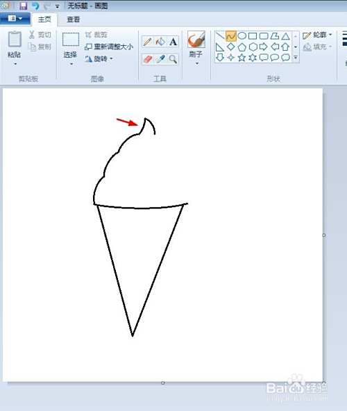 第四步:在画好的波浪线形状上方,画出一个下图所示的尖。