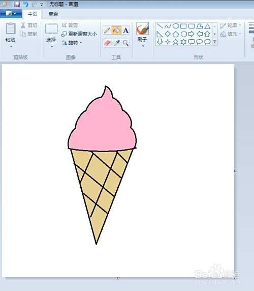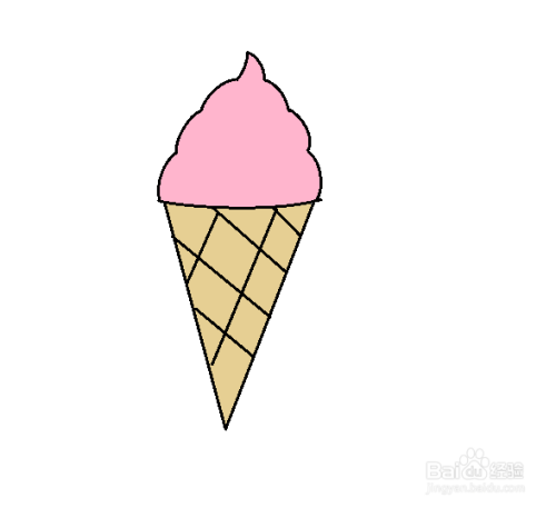 第七步:用米色和粉色彩笔给画好的冰淇淋涂上颜色。