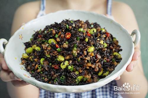 干菜洗净浸泡后,挤出水,放入蒸笼蒸20分钟。(这一步不能省略)如果有更大的,就把它切掉。别懒了。我的那个以前蒸过。把它封在冰箱里保存起来。把它放回蒸笼里。拍张照片让它看起来。。。(')