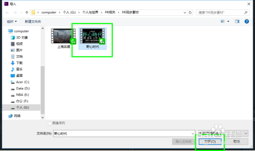 选中某个素材,单击右下角的【打开】,如下图所示。