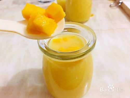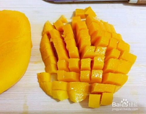 凝固后取出,上面放些芒果丁装饰(如下图)