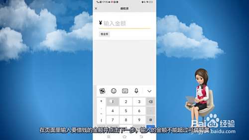 在页面里输入要借钱的金额并点击下一步,输入的金额不能超过可借额度。