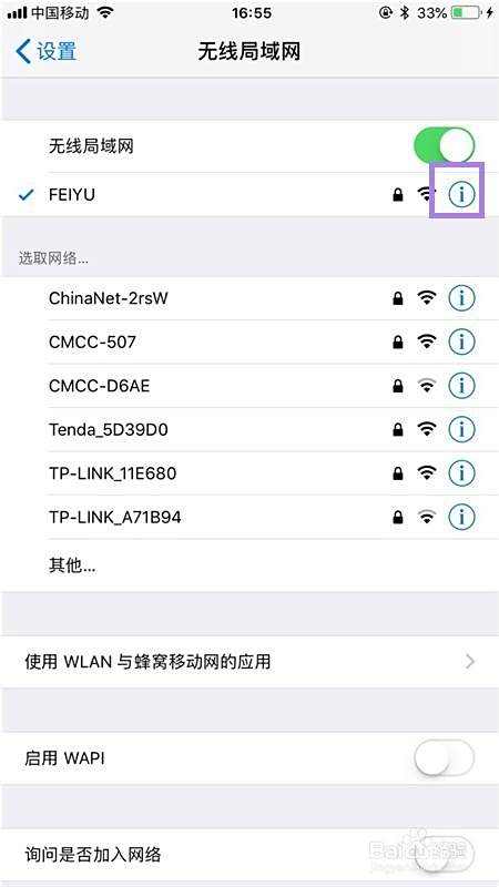 3、接着点击正在连接的无线局域网右侧的感叹号。