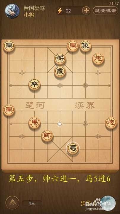 第二步,帅五平六[吃炮],马3退5[继续将军]