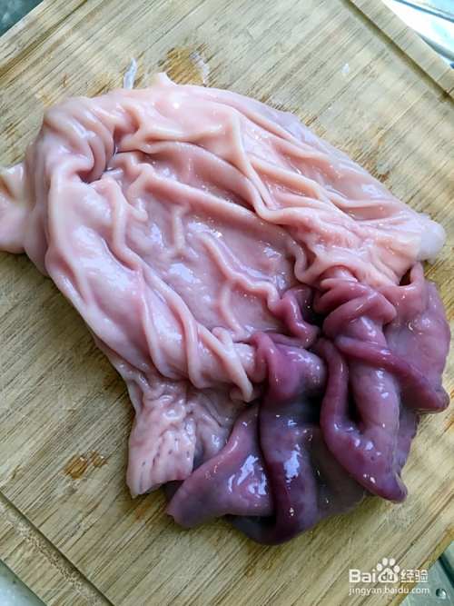 在热水里焯一下,冲掉沫子,猪肚上的顽固污物这时候用刀背刮掉就较为容易一些