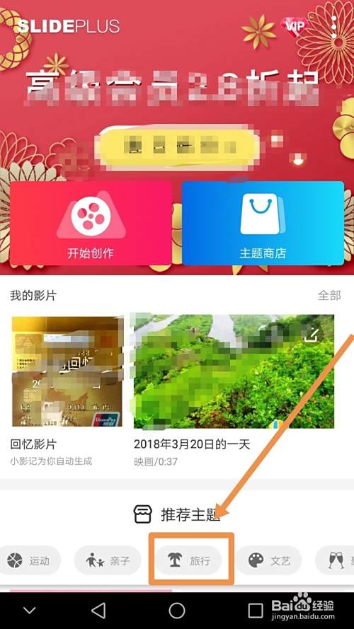 首先需要点按手机中的小影记应用标志,进入该应用主界面后点按下方推荐主题下的某个主题,此处选择的是旅行。