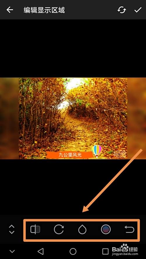 如果要对photo video中某个图片场景进行编辑,可以点按编辑标志,然后点选某个具体场景进行编辑,进入图片场景内部后可以进行镜像翻转、旋转、明暗度、背景设置等操作,如下图所示。