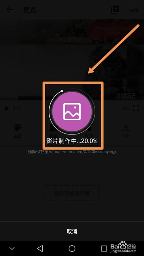 点按导出后,界面会显示导出视频的百分比进度,导出后的视频存放在名为xiaoyingji的相册内。