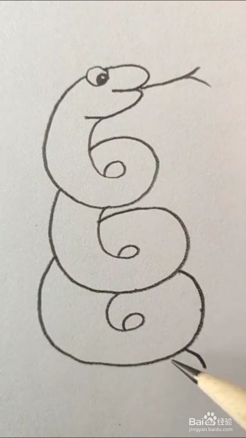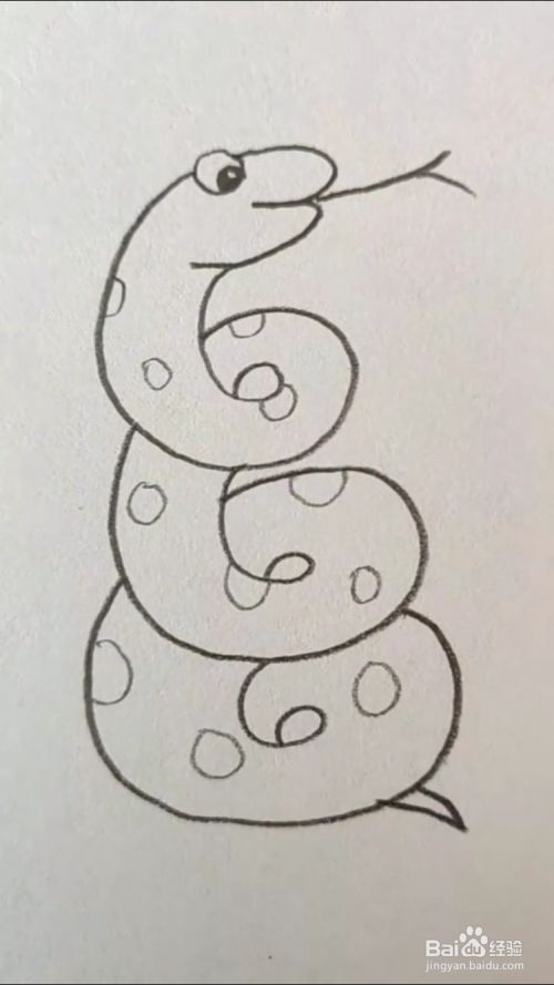 最后画出蛇身上的花纹,如下图所示。这样,蛇的简笔画就完成了。