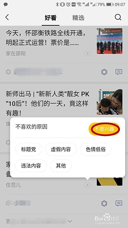 然后你可以选择不看它的原因,点击为不感兴趣。如图所示。