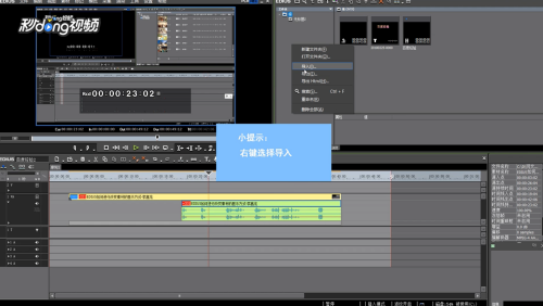 打开Edius,在素材库中右键选择导入,找到你要导入的素材,直接导入即可。