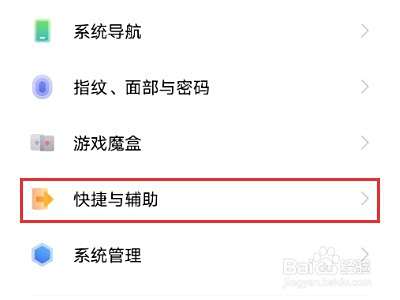 1、打开手机设置,点击【快捷与辅助】。