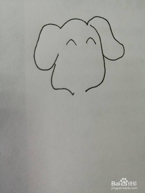 第一步,我们先把可爱的小狗的耳朵和椭圆形的头画出来,注意头部轮廓的画法。