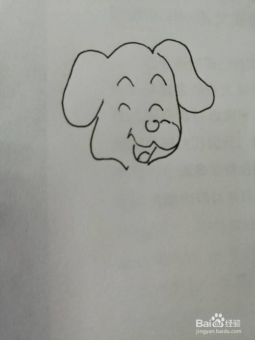 第三步,然后把可爱的小狗的小鼻子和小嘴巴画出来,注意嘴巴的位置。