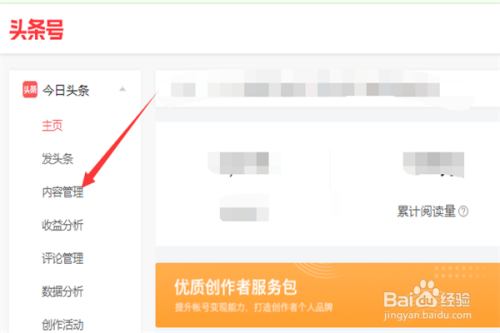 头条后台点击内容管理。